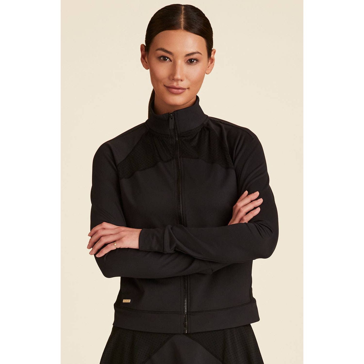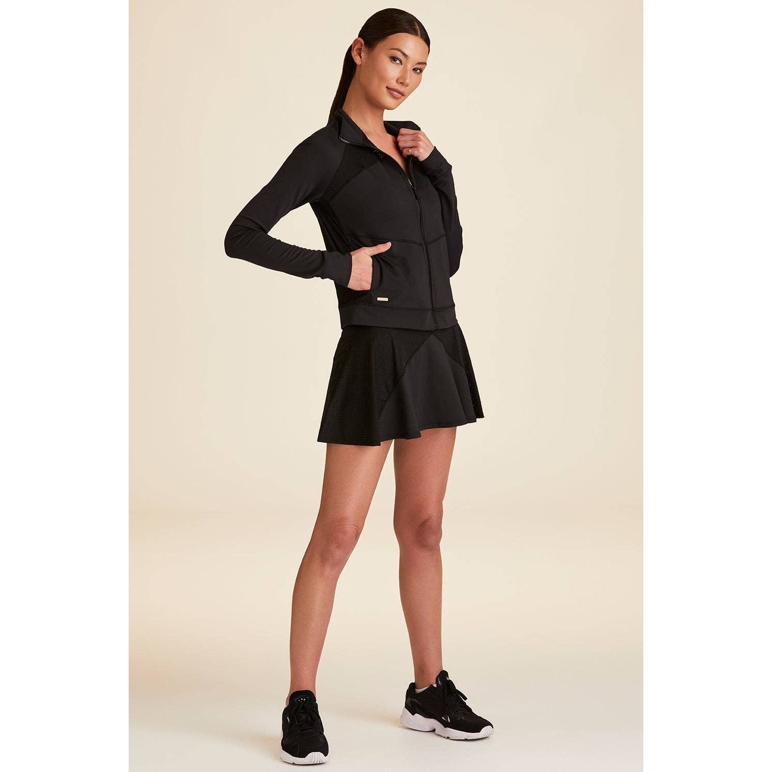 It's all in the detail of the Black Ace Jacket, a black athletic jacket for any warm weather occasion. Featuring pindot mesh ventilation panels, our Ace Jacket keeps you cool on and off the court. Layer over other Tennis Capsule pieces to create an elevated look.
