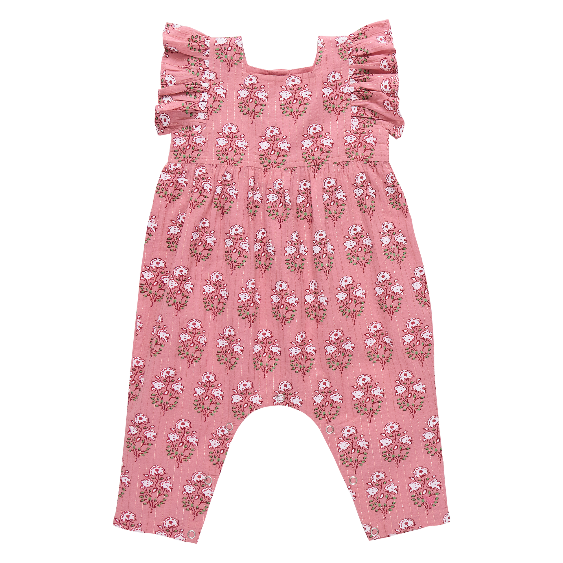 Blushing with charm, our Baby Girls Elsie Jumper in Pink Strawflower Block Print is a springtime delight. Ruffled sleeves and gentle gathers make it perfect for first adventures. Match with big sister in the Girls Mary Barrett Dress or Girls Ava Top and mom in the Women’s Pintuck Indira Top or Women’s Theodore Short for a perfect family match!
