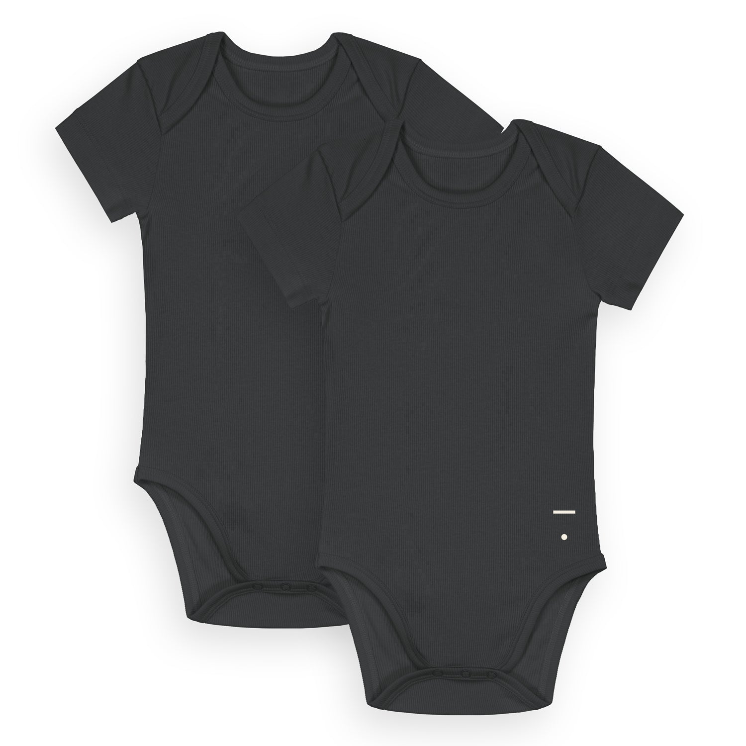 Rib-knitted in a blend of organic cotton and recycled elastane, this bodysuit is super soft to the baby's skin. A Short sleeve style with snap buttons at the crotch for easy dressing. Our logo is stitched on the chest. Comes in a pack of 2.