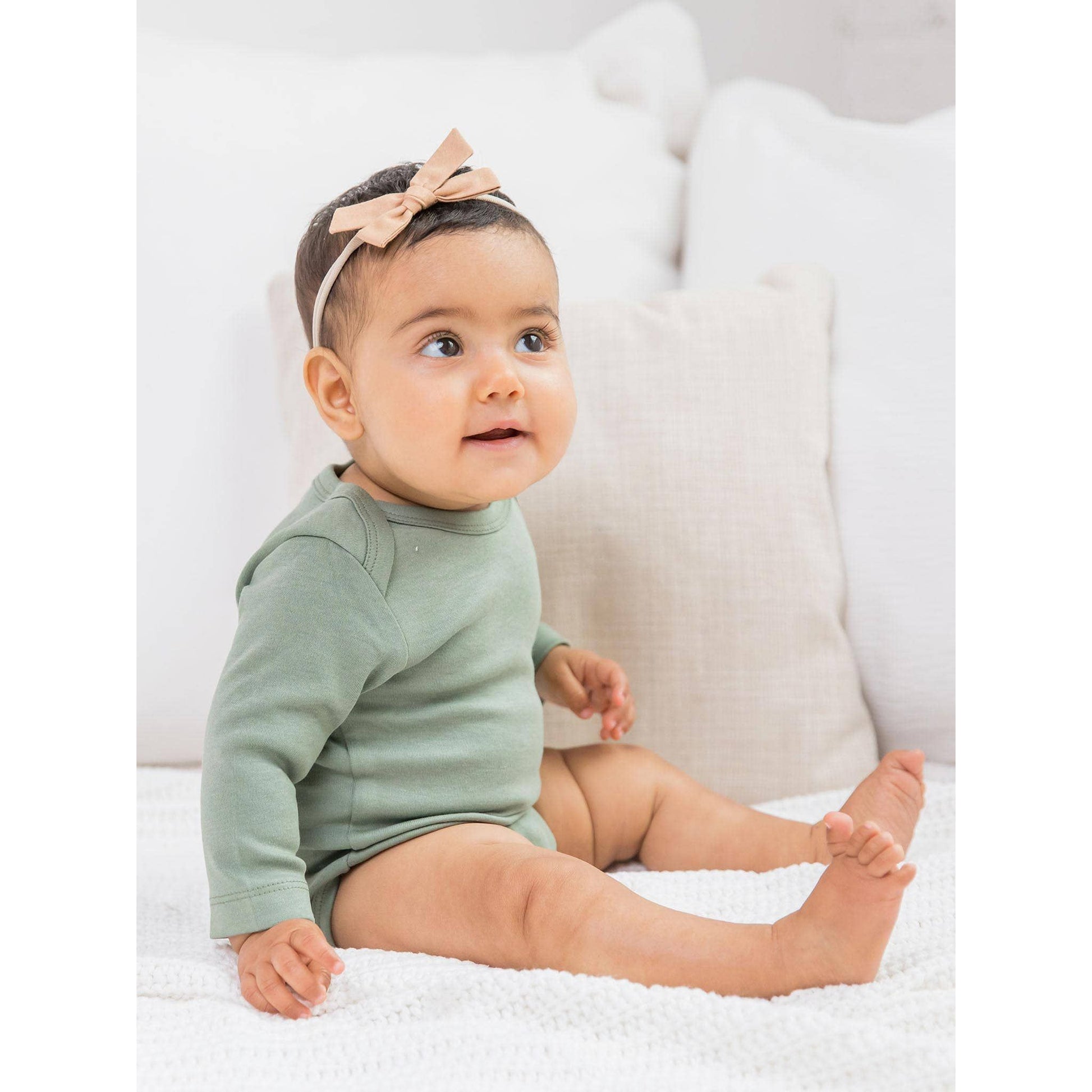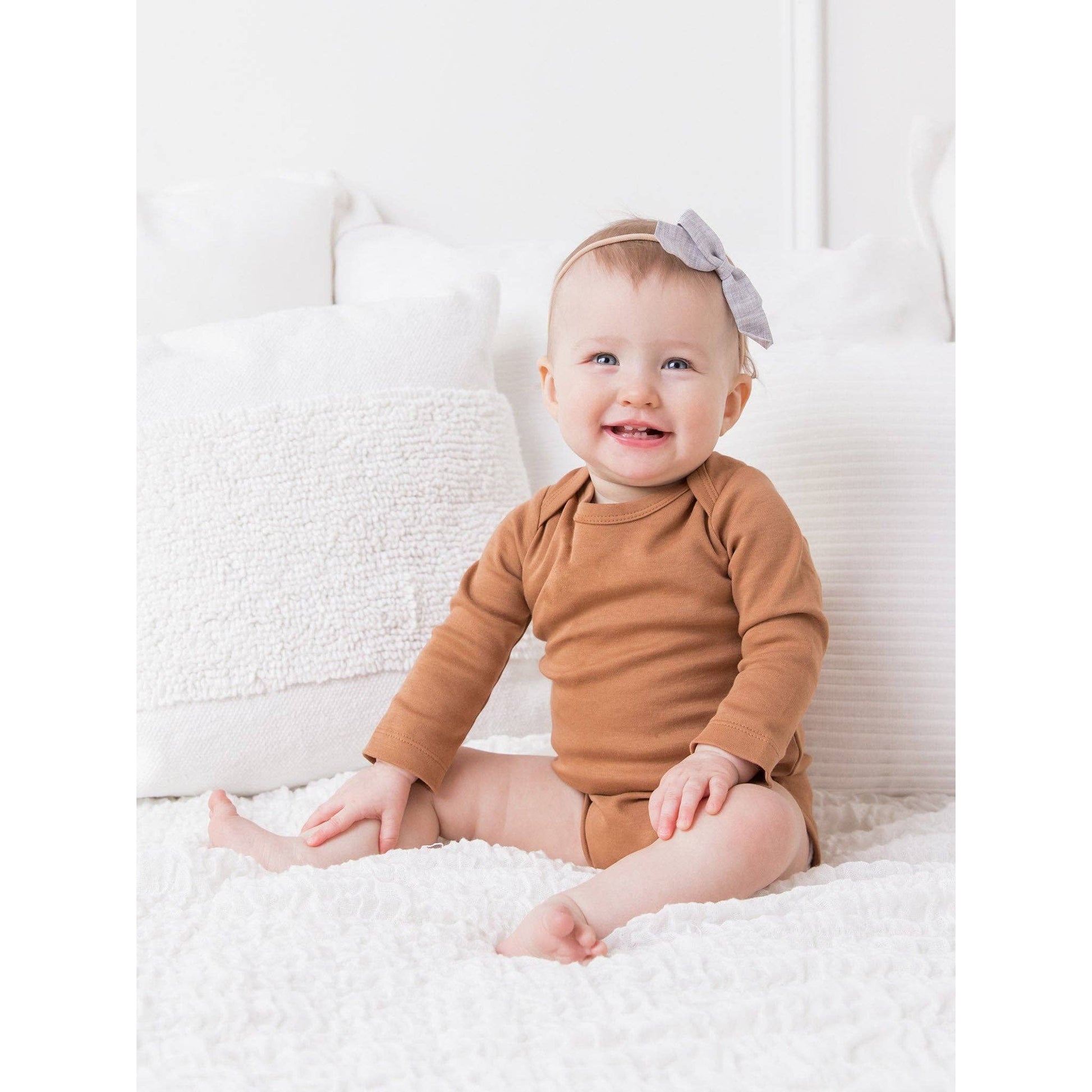 Buttery soft and versatile, our organic long sleeve bodysuit is an essential piece for any growing baby.