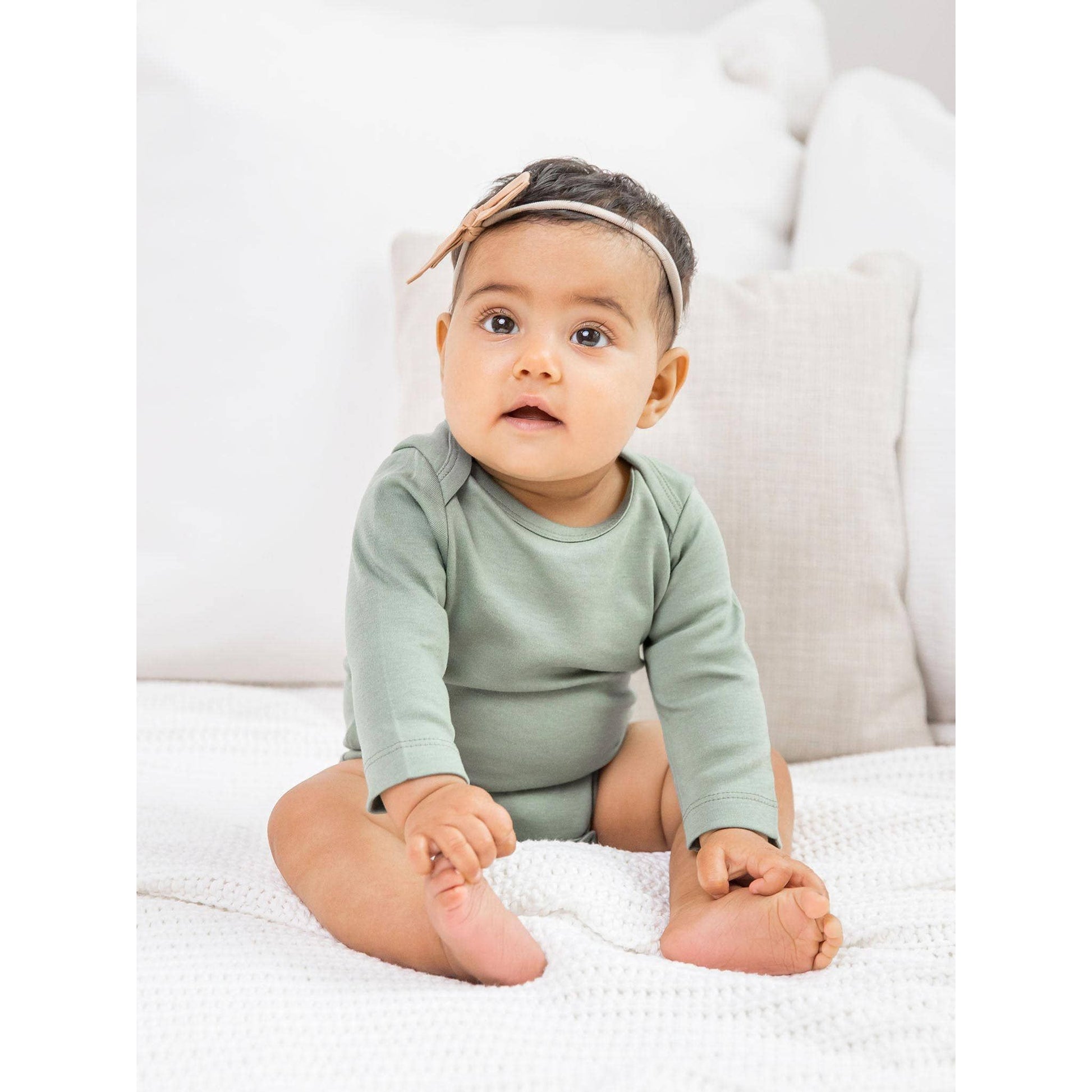 Buttery soft and versatile, our organic long sleeve bodysuit is an essential piece for any growing baby.