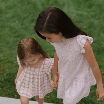 a new sweet silhouette for girls! designed with a high, ruffled neck, cap sleeve, button back and dropped waist, this timeless dress in our timeless antique floral print is perfect for a season of summering.