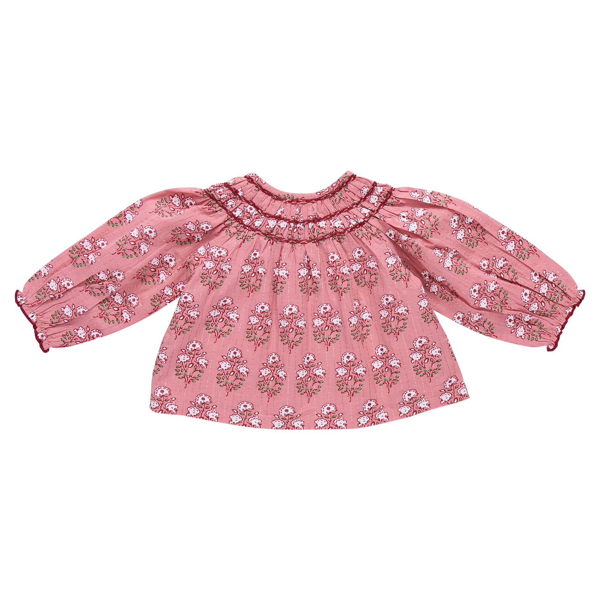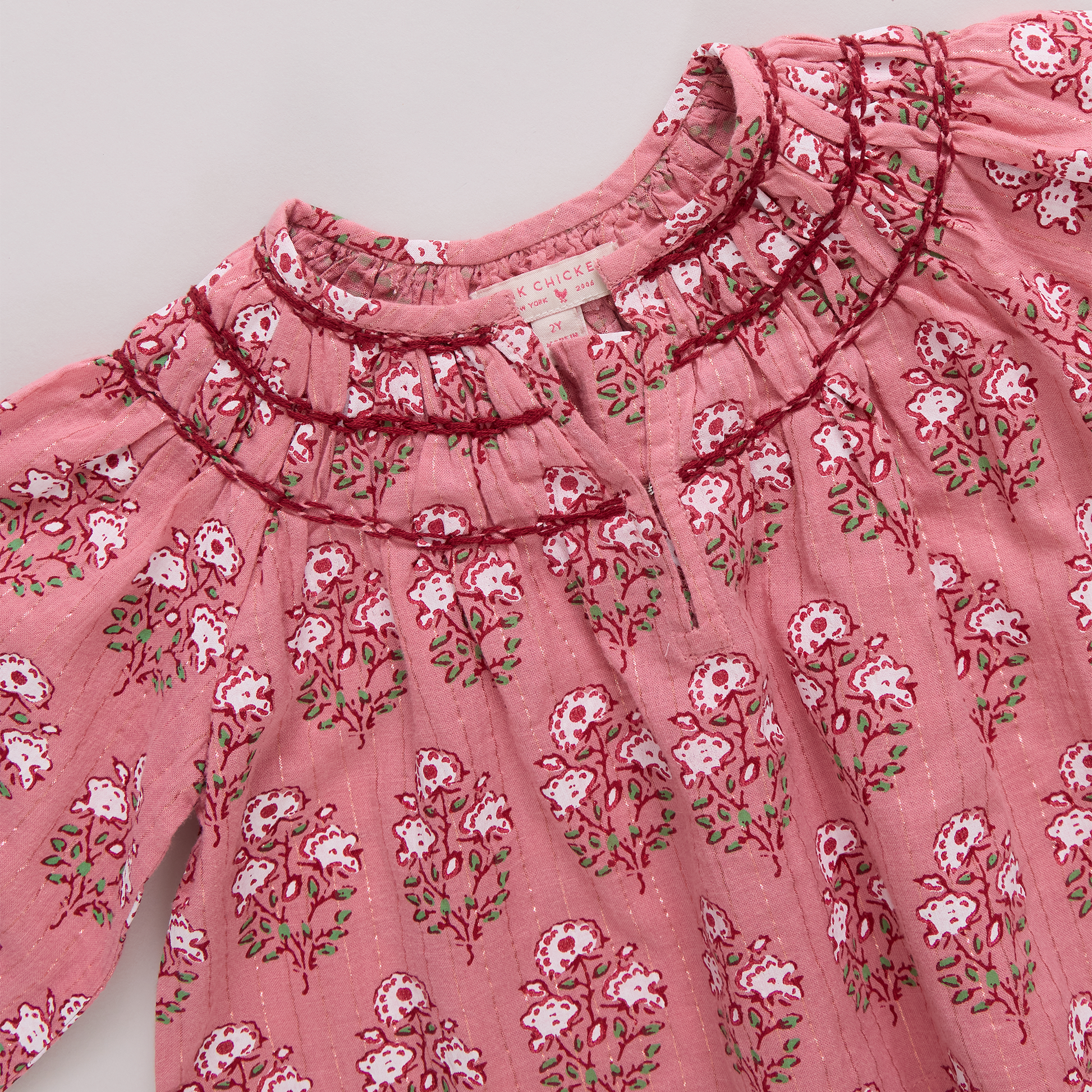 Soft as a petal and sweet as spring, our Girls Ava Top in Pink Strawflower Block Print is filled with romantic charm. Intricate smocking and gentle gathers make it a keepsake piece for play or special days. Pairs beautifully with the Girls Theodore Short and mom’s Women’s Pintuck Indira Top in Pink Strawflower Block Print.