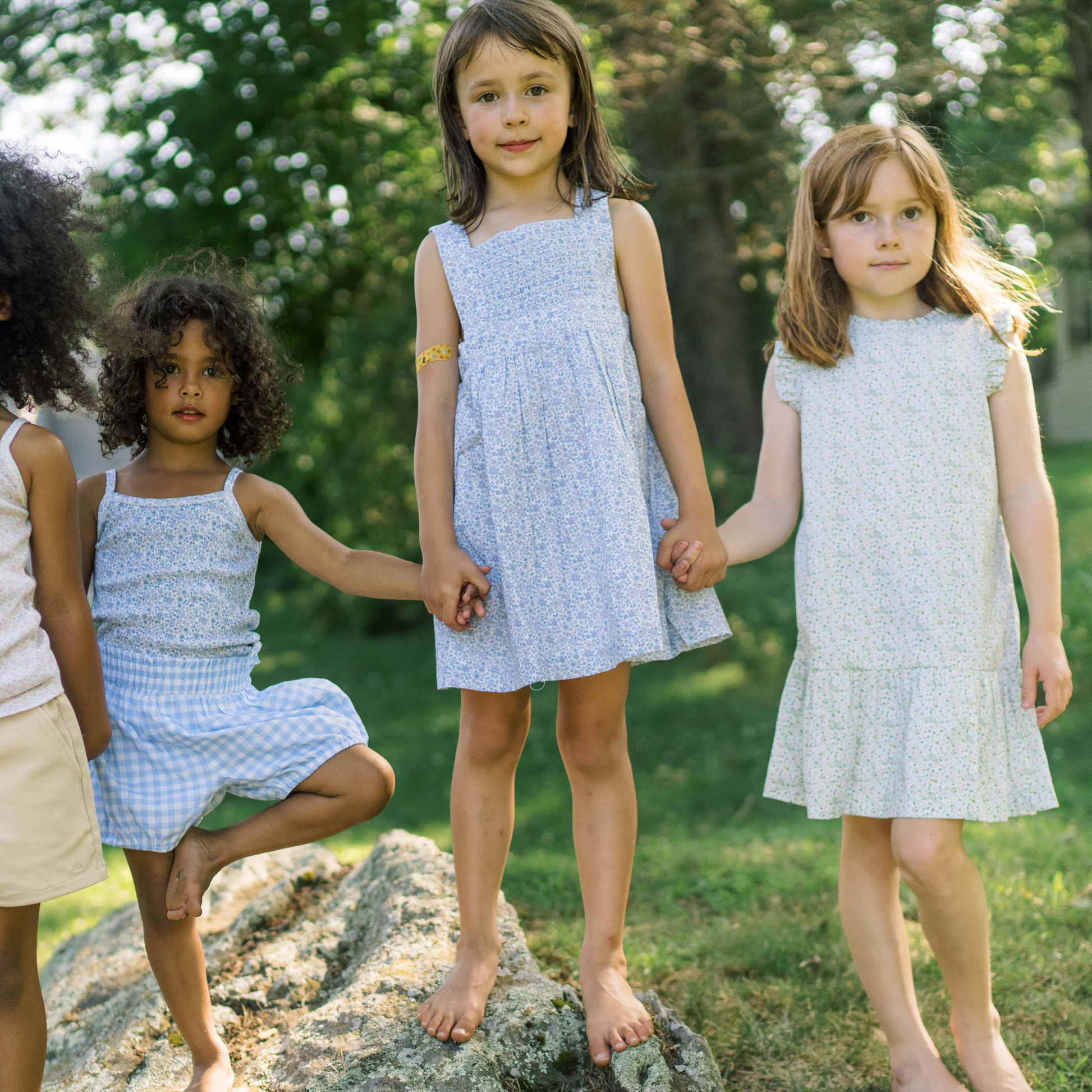 a modern take on a smocked silhouette, this new dress for girls is sure to be a favorite. designed with a square neck, smocked panel and button back, this dress is everyday ease at its best. available here in our signature slate floral print.