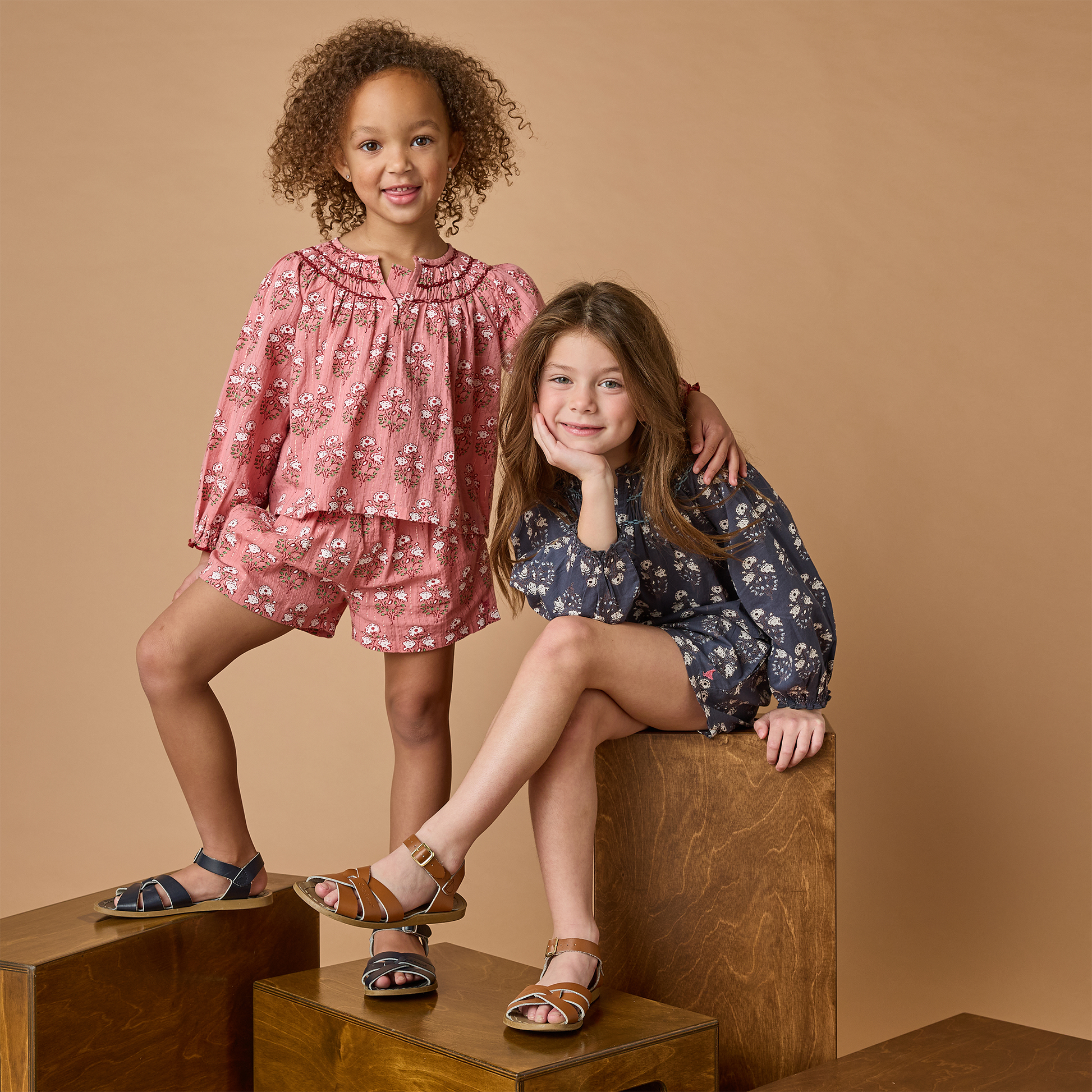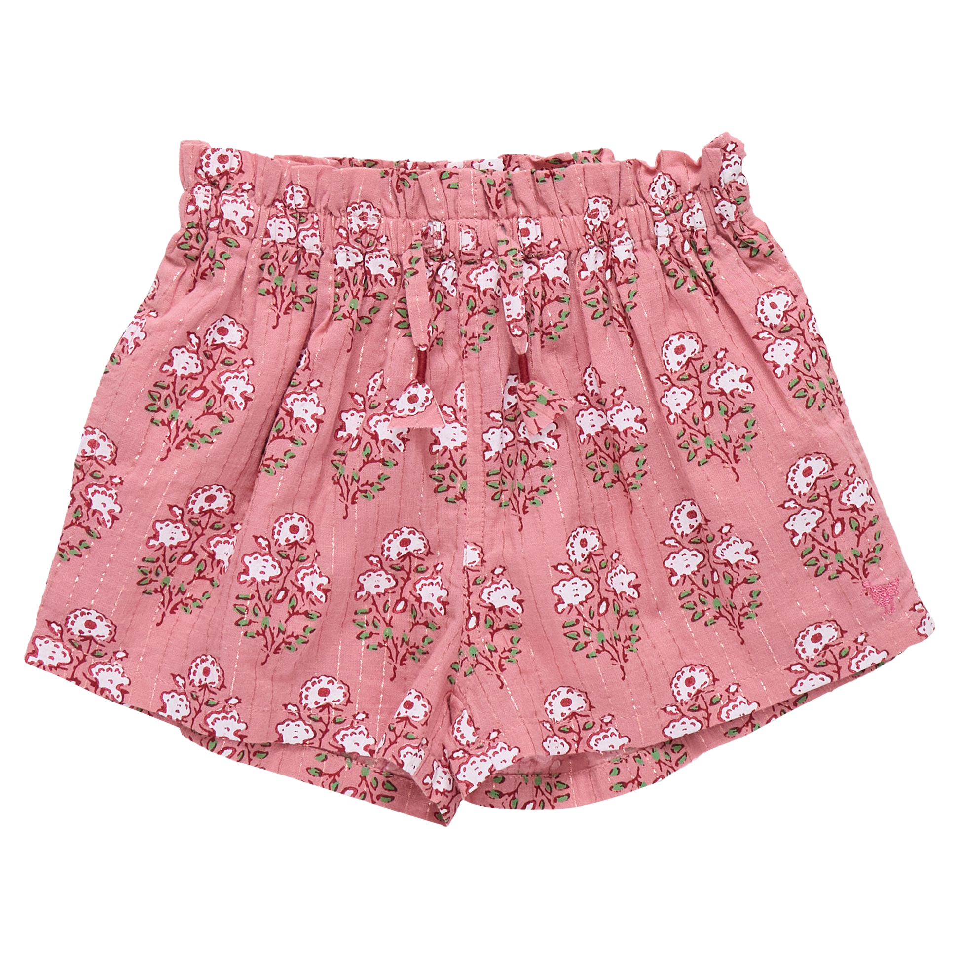 Sweet and playful, our Girls Theodore Short in Pink Strawflower Block Print is made for sunshine and laughter. Pair it with the matching Girls Ava Top or coordinate with the Women’s Pintuck Indira Top and Women’s Theodore Short for a family floral moment!