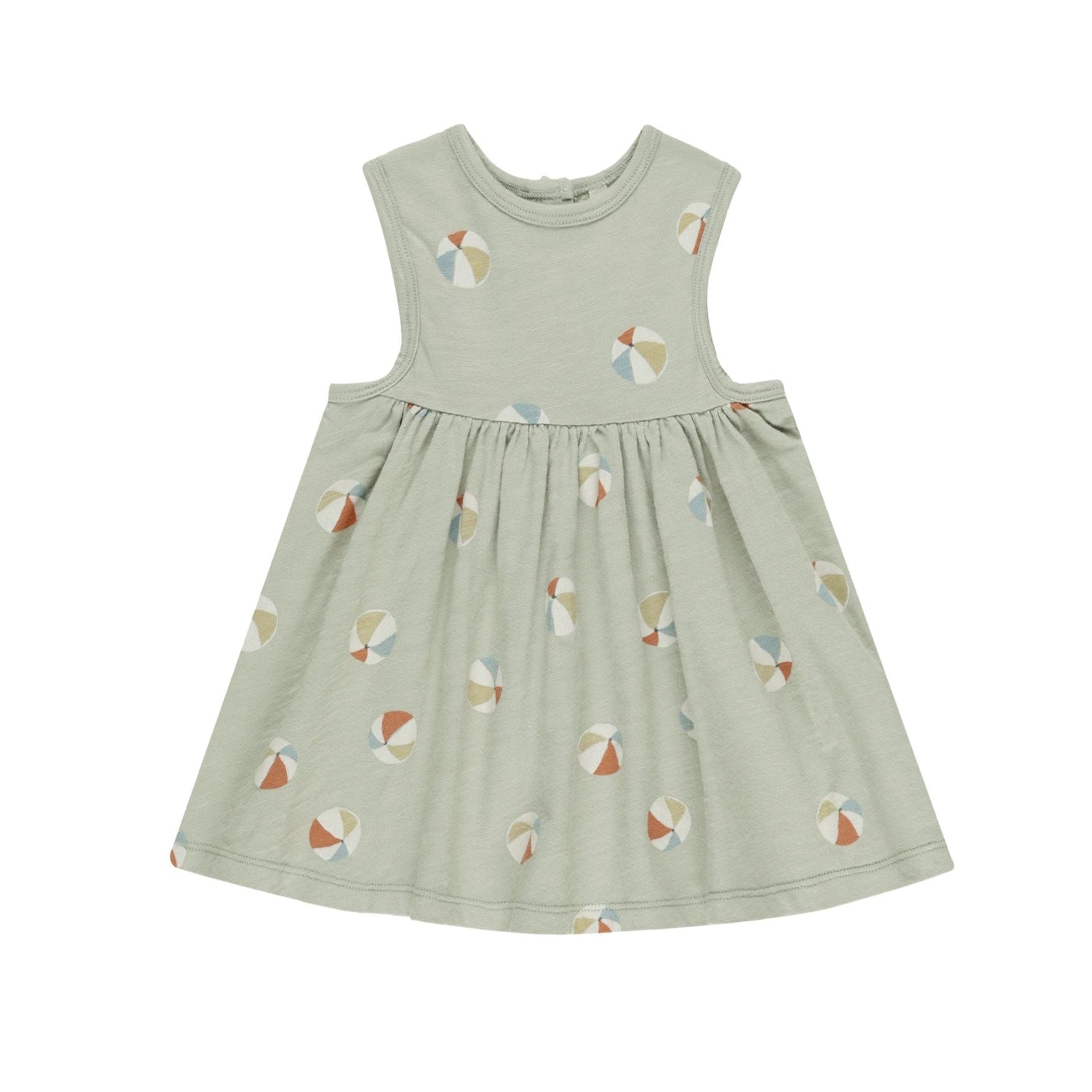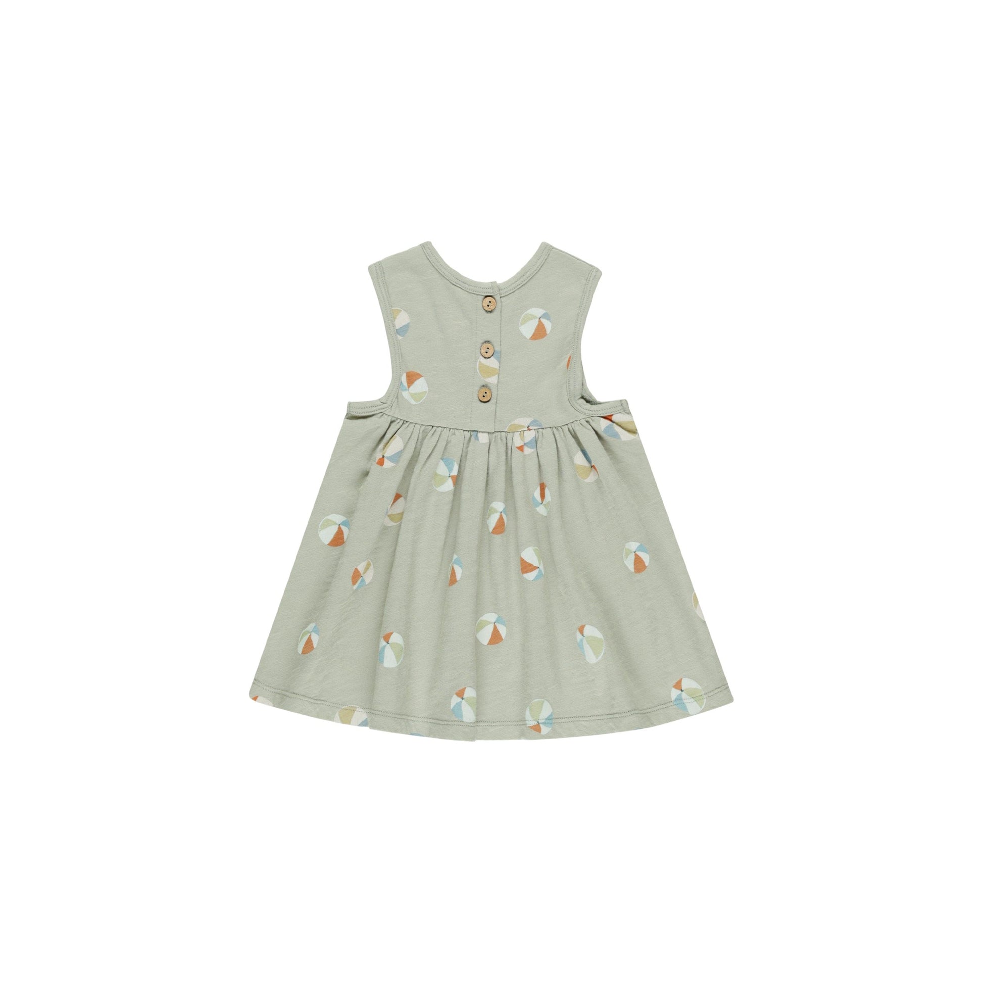 Sleeveless babydoll dress made from soft cotton jersey, featuring a gathered skirt and buttons at the back neck.