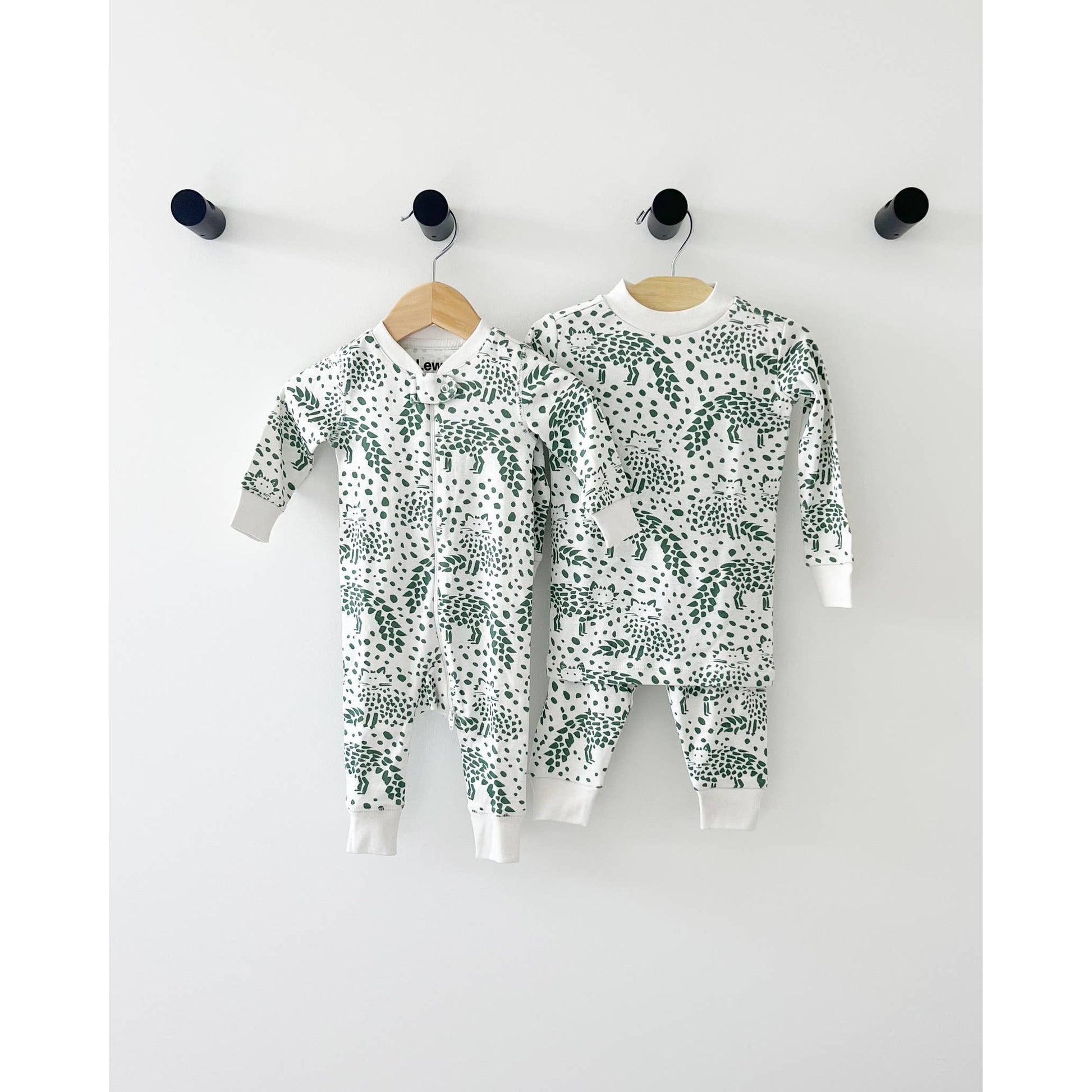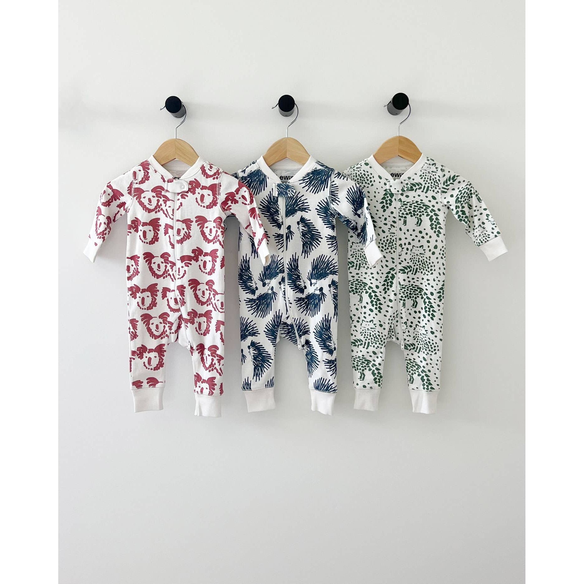 Nothing cuter than little ones in printed pajamas! Our Zip Sleeper features a double zipper up the front and snap tab at collar. Made from a super soft ribbed cotton, which allows for a little extra give and roomier fit that also fits baby longer! Fits true to size.