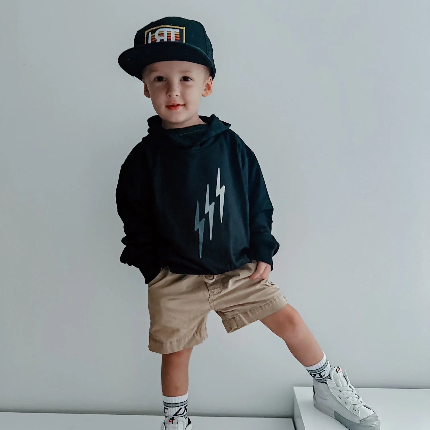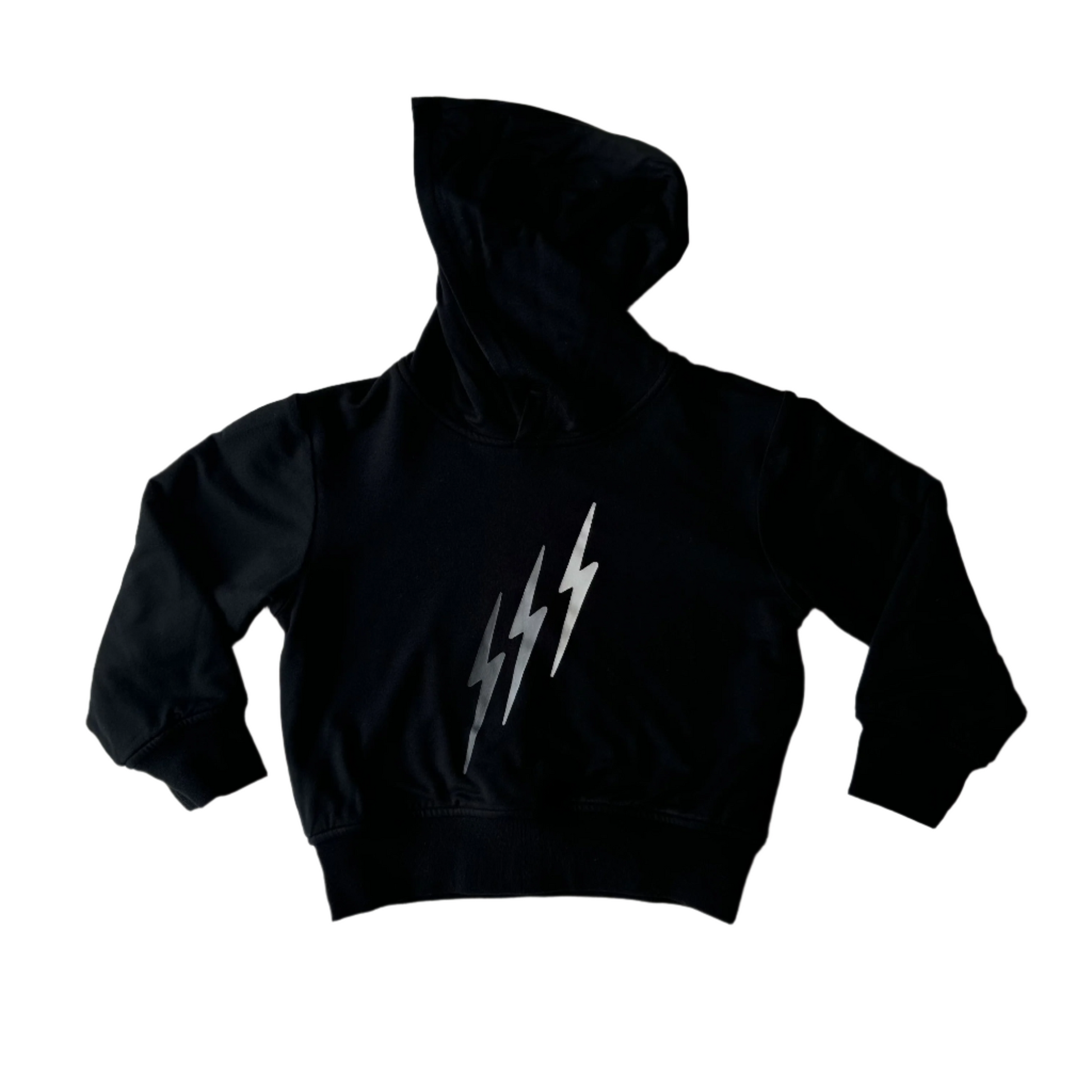 Triple sparks equal triple the rad vibes. This sustainably made bamboo hoodie is the real-life blanket that you will wish came in adult size. Adorned with three repeating signature LRT sparks, this monochrome dream is about to be the best layering piece in your LRT's wardrobe. This hoodie runs true to size, but if you're unsure we recommend sizing up! Oeko-Tex Standard 100 bamboo. Tagless for the ultimate sensitive kids! Buttery-soft and ultimate stretch. Designed by a mama in Charlotte, NC. For best upkeep, we recommend machine washing on cold and tumble dry on low.