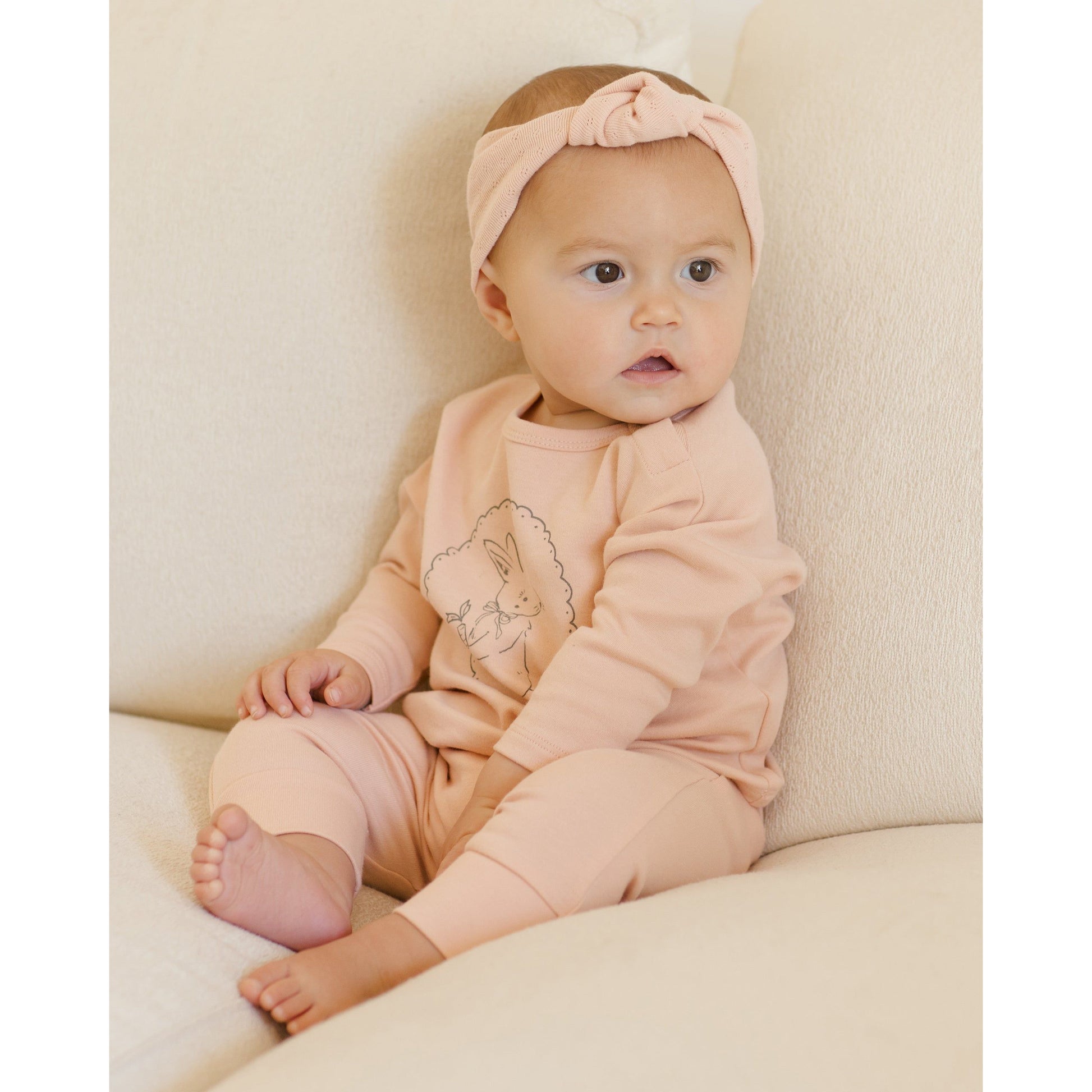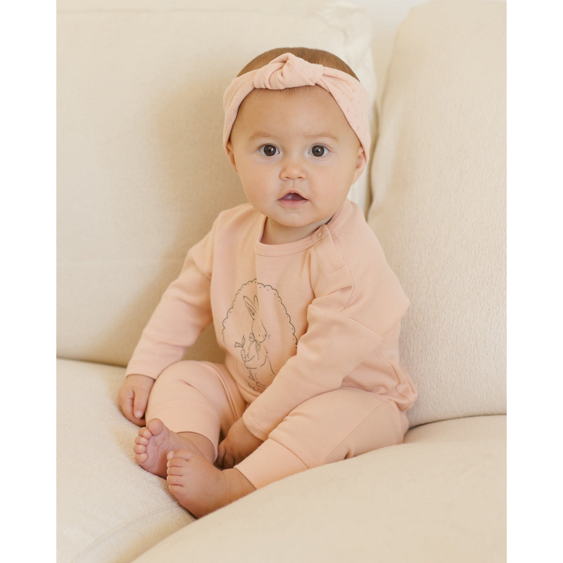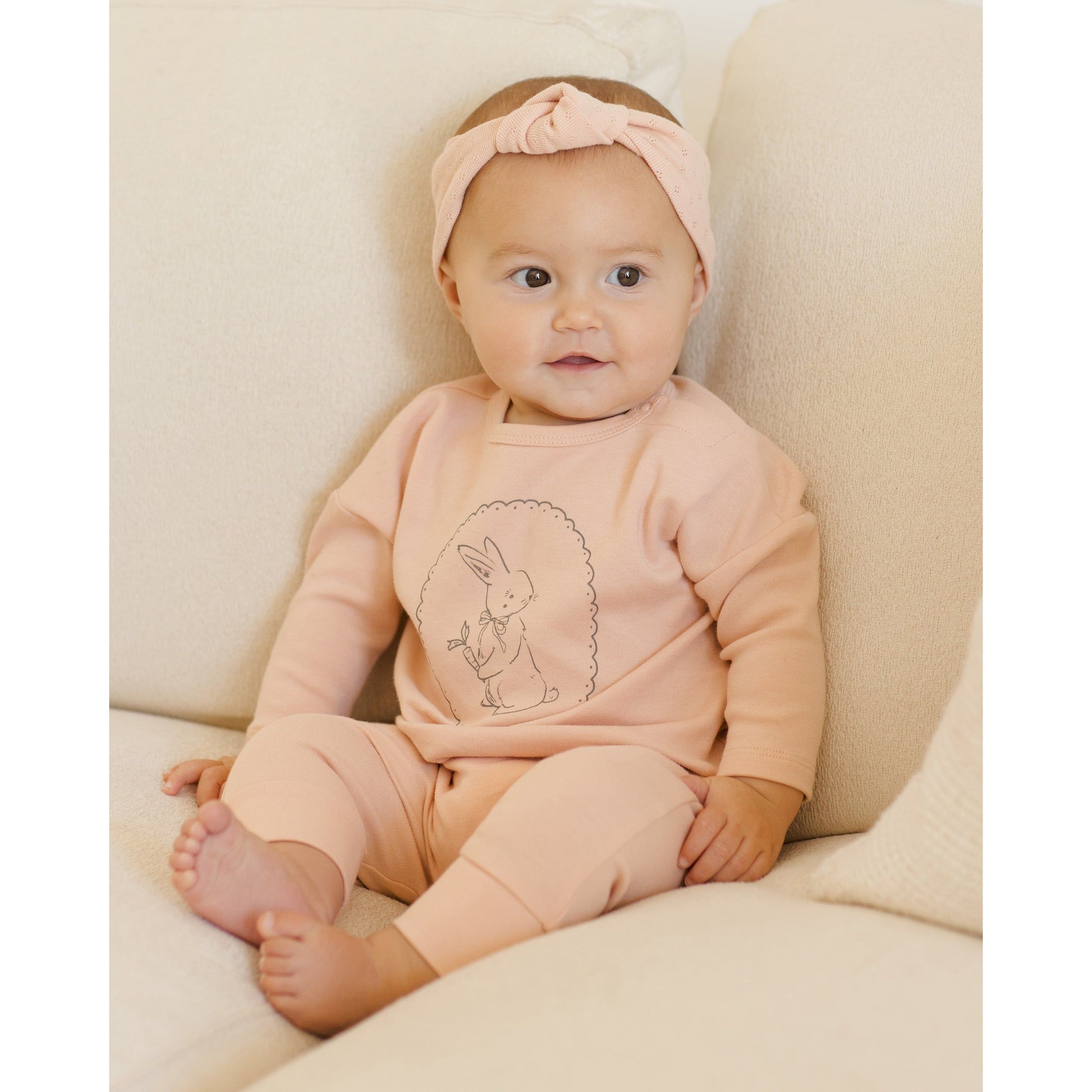 Featuring our ‘bunny’ spot print on our 'melon' hue. Welome spring and Easter celebrations in this sweet bunny design.