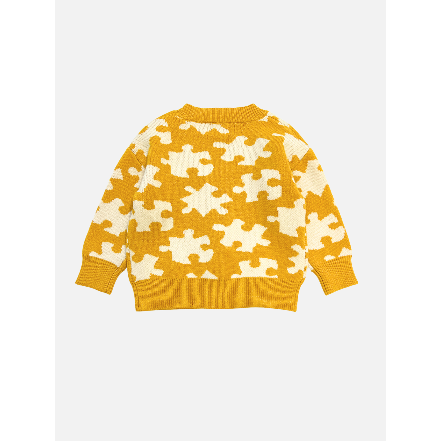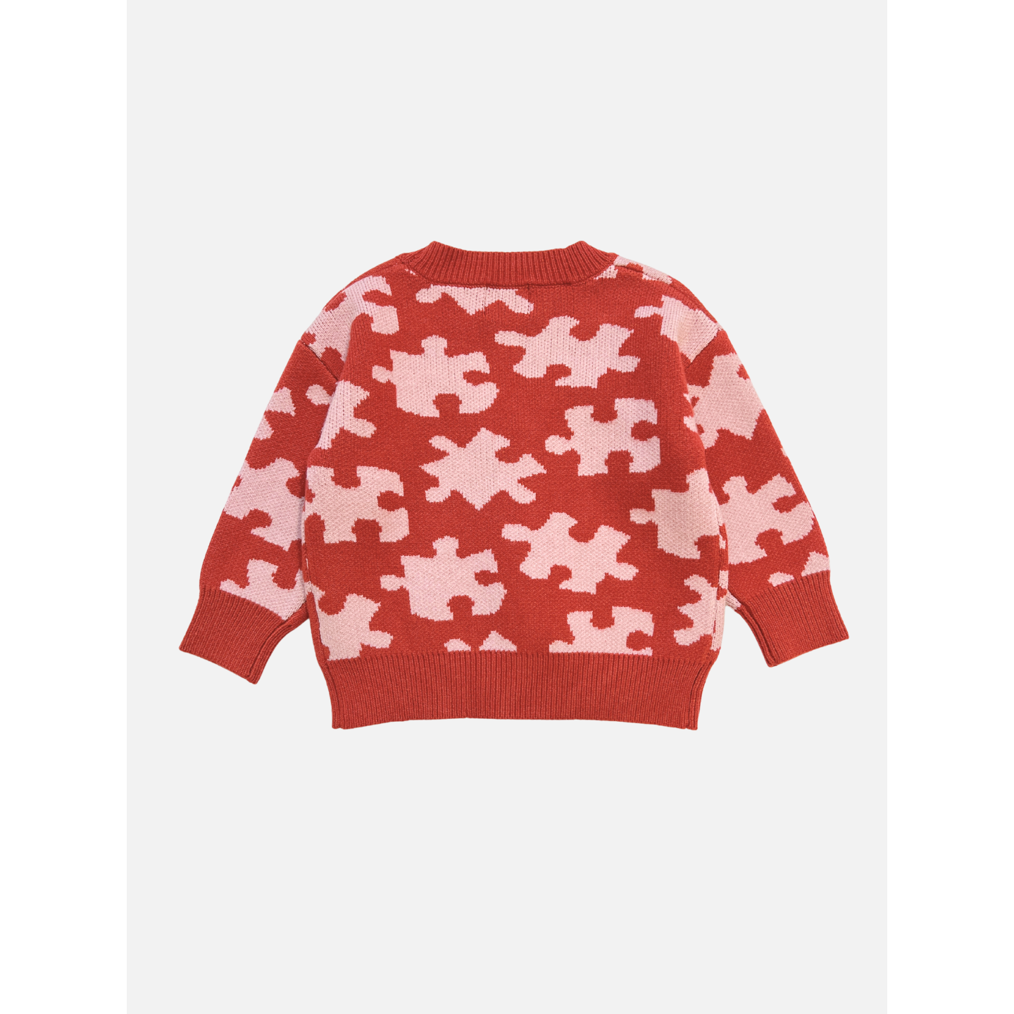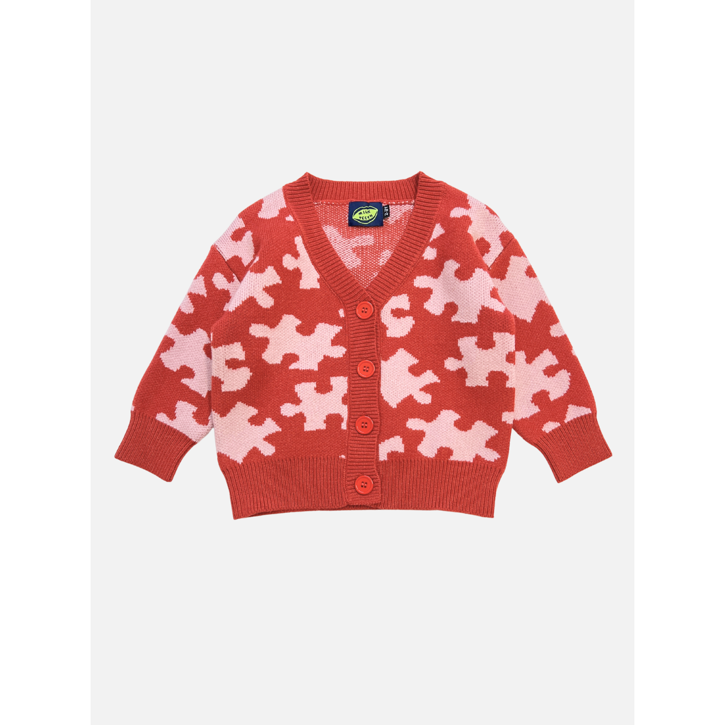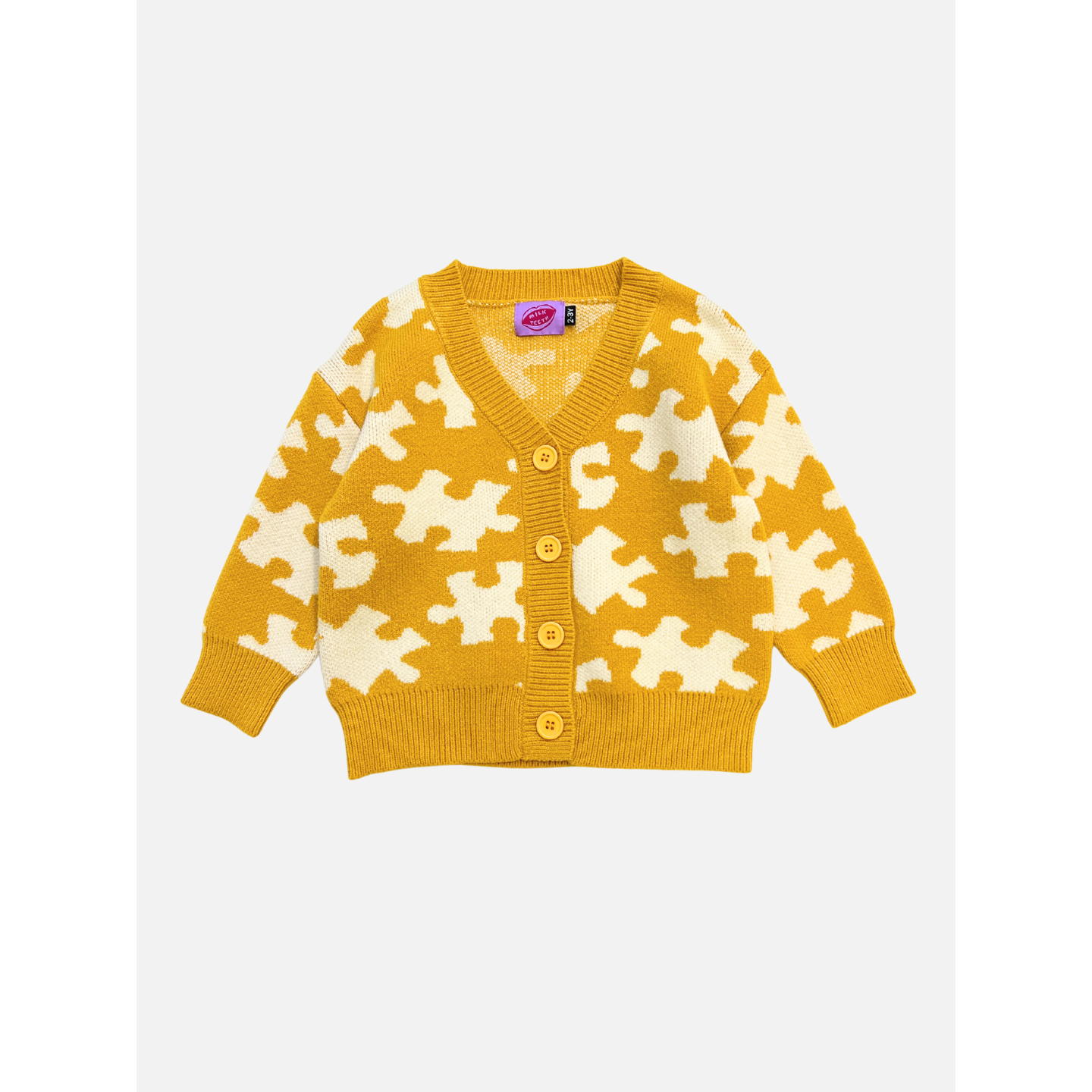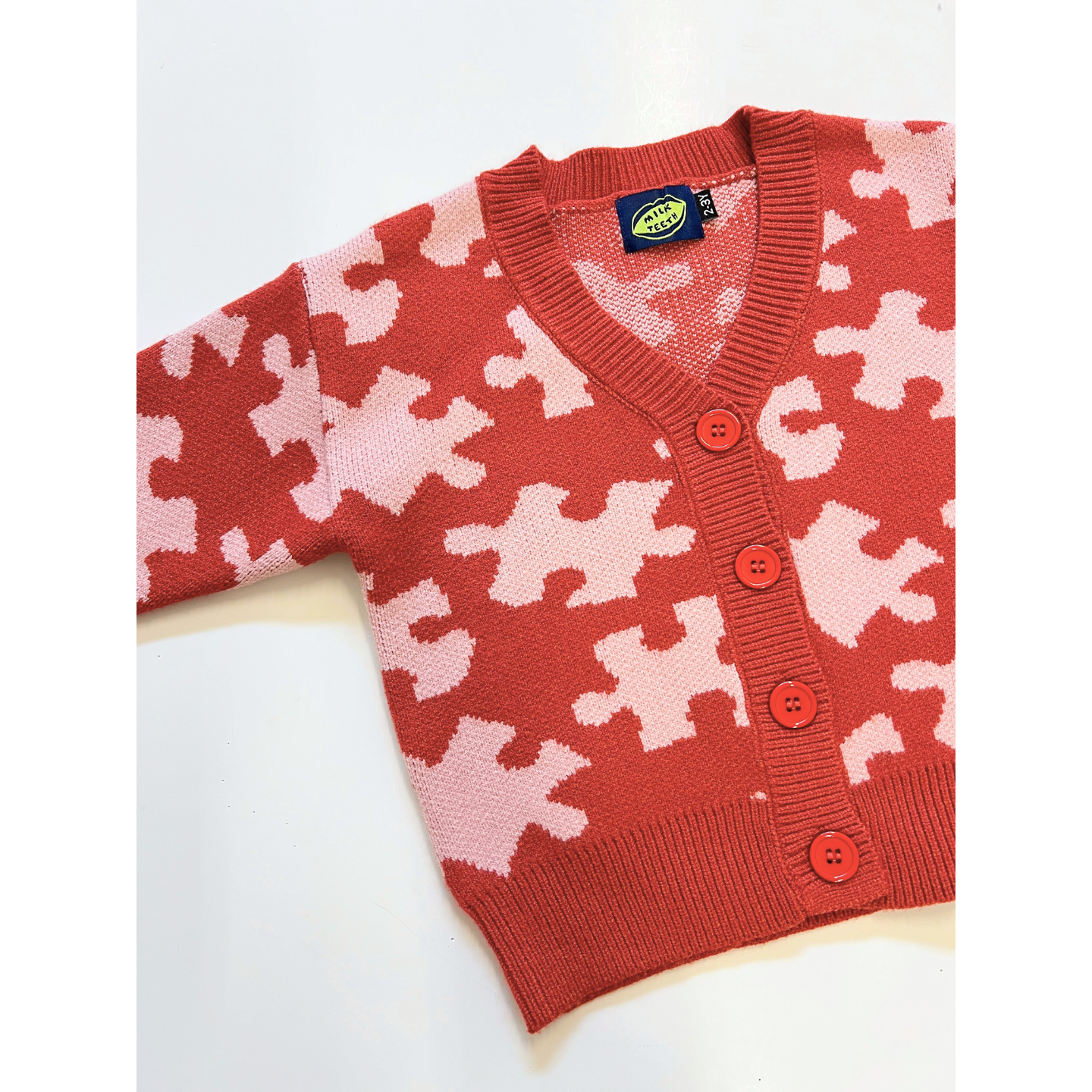 V-neck cardigan has front buttons and ribbed trim. Tonal puzzle piece pattern, in our bestselling unisex silhouette.