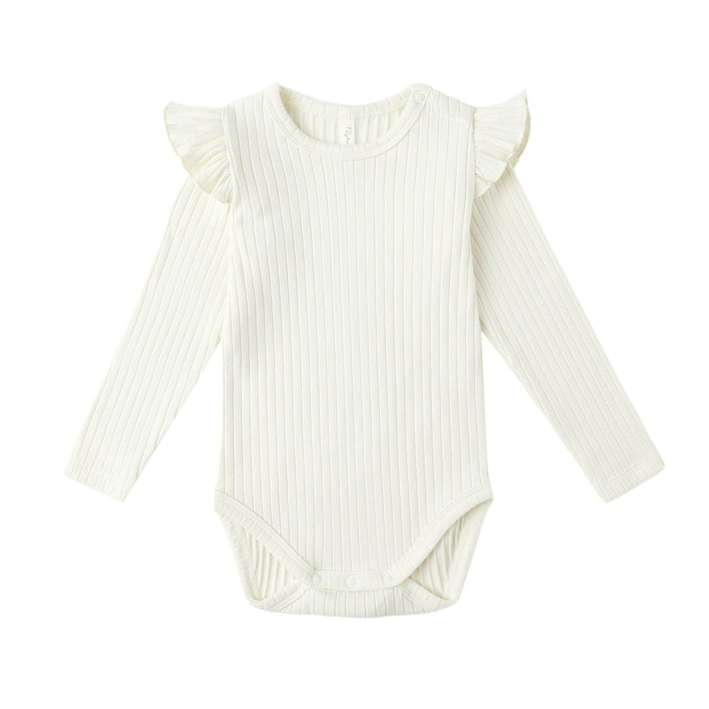 This long sleeve bodysuit is a must-have for your little gal this season! Designed with sweet shoulder ruffles and snaps at the neck and bottom for easy changes. Pair with our leggings to complete the look.