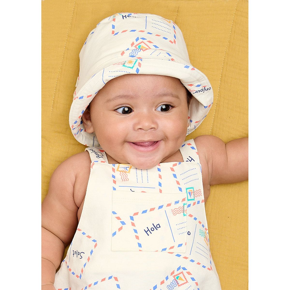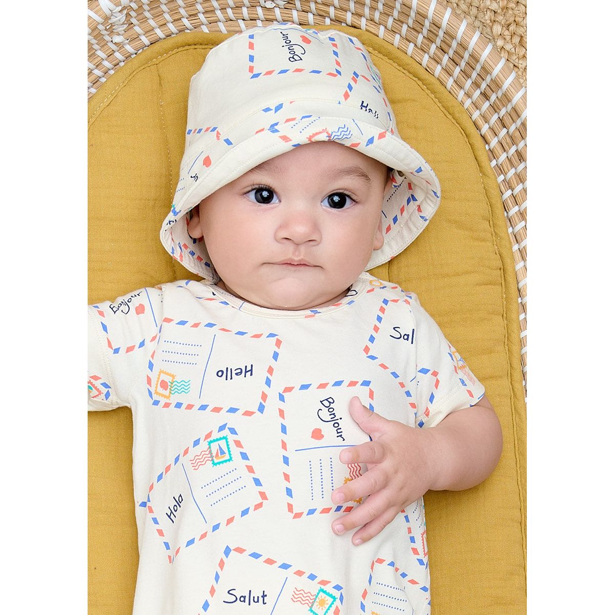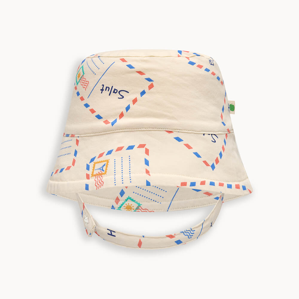 Sun Hat / Bucket Hat for baby & kids in all over print. Classic bucket shape with baby sizes having a handy adjustable chin strap to help keep it on little heads for longer! Made from 95% certified organic cotton and 5% elastane for softness, comfort and stretch.
