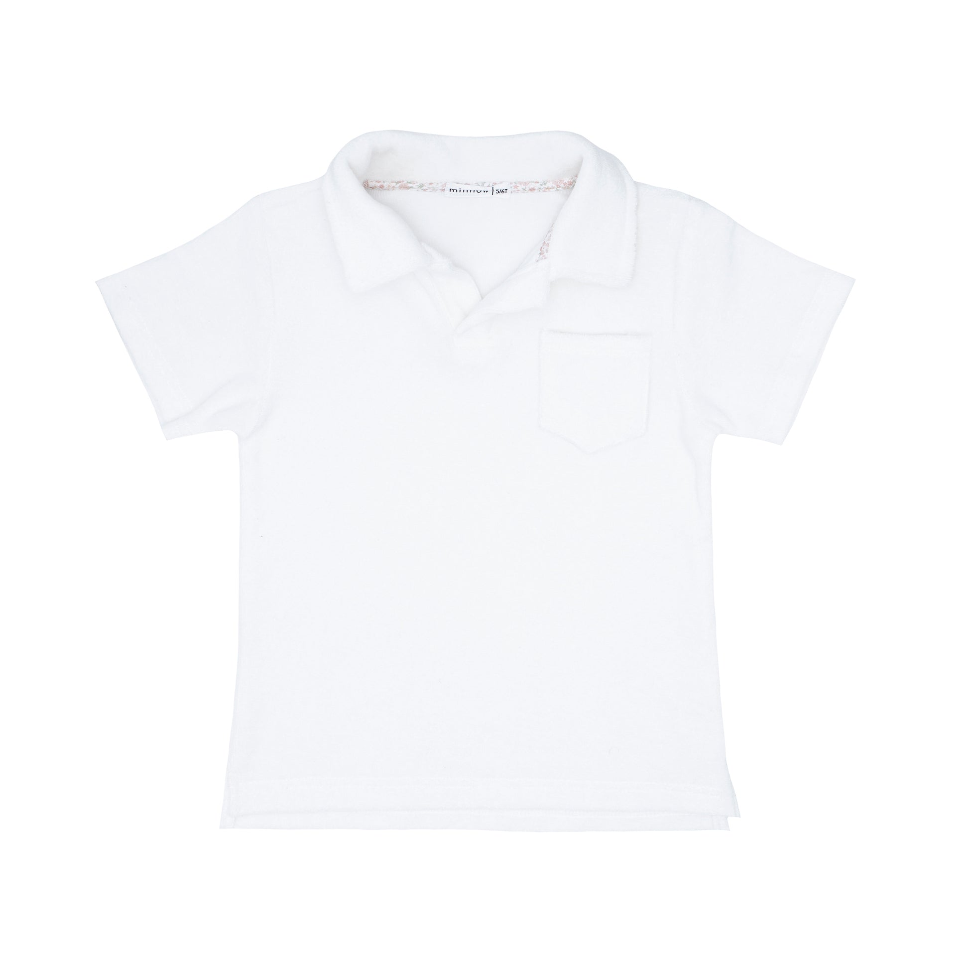 made with our premium french terry, this cozy polo shirt is just as great post-dip as it is for an elevated playtime look. crafted with a classic collar and front pocket, this versatile shirt in crisp white will take your little from swim to play, all day!